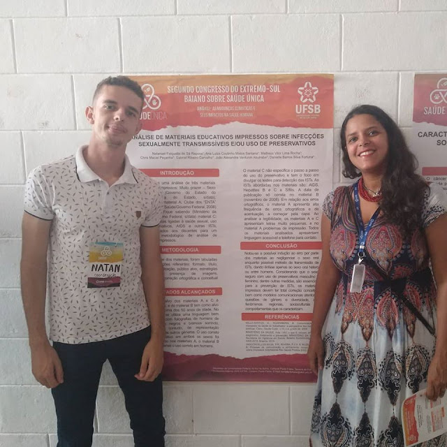 Por fim quero ressaltar nossas/os discentes que apresentaram trabalhos, frutos de um exercício metodológico de análise de materiais educativos impressos, do nosso Componente de Educação e comunicação em saúde da UFSB. Alguns discentes inclusive, tiveram neste evento a oportunidade de apresentar um pôster acadêmico pela primeira vez, o que muito me alegra e emociona!